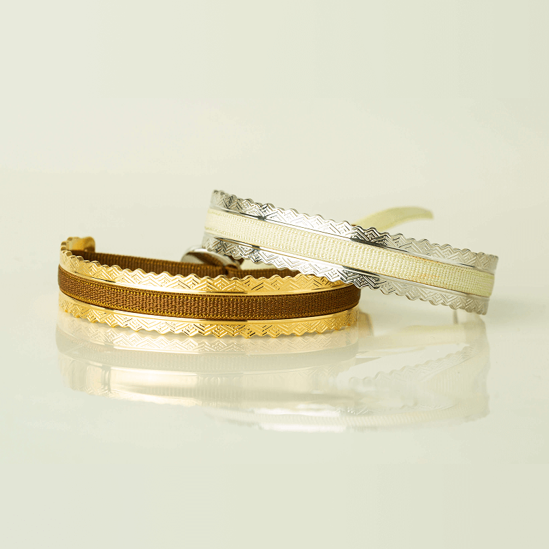 Joncs aux motifs gravés et à la personnalité affirmée — l’élégance avec un twist.